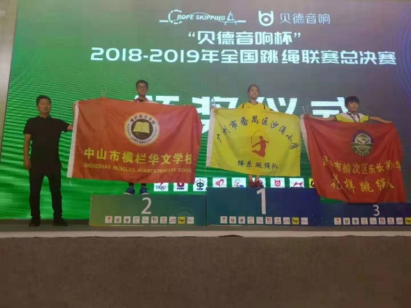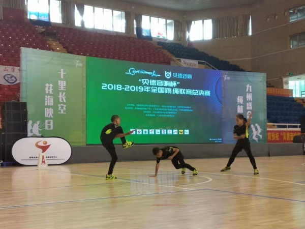2019年7月19日,由国家体育总局社会体育指导中心、中国大学生体育协会、中国中学生体育协会主办,全国跳绳运动推广中心、广州市花都区文化广电旅游体育局、广州市花都区教育局承办,上海大健石星空体育传播有限公司协办的“贝德音响杯”2018-2019年全国跳绳联赛总决赛在广州市花都区花都体育馆拉开了序幕。此次赛事吸引了来自全国各地的94支参赛队伍,共计1109名运动员齐聚一堂,参赛规模创下历史新高!