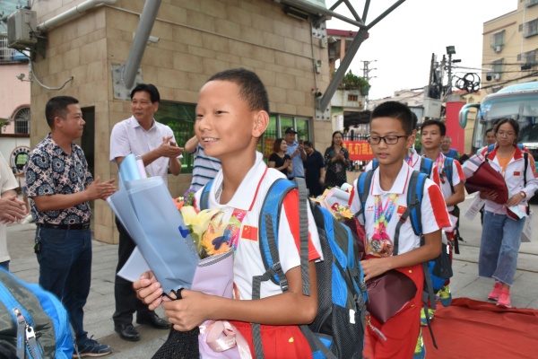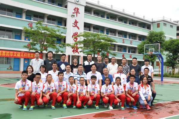 7月29日,华文学校跳绳队教练和运动员们载誉而归,横栏镇教育事务指导中心霍嘉俊主任、华文学校董事梁耀新、祝和群先生、华文学校谢春生校长以及运动员家长等人到学校门口迎接他们的归来,并在学校会议室举行了座谈会。