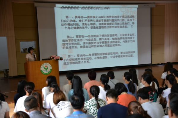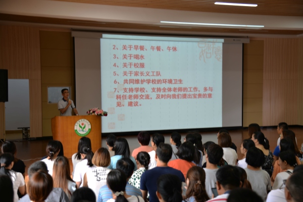 与此同时,学校还组织了新生家长培训会。首先,戴织校长介绍了学校蓬勃的发展进程、优秀的行政队伍、先进的教育理念、雄厚的师资力量、特色校本课程与丰硕的育人成果,并详细指导家长如何帮助孩子做好入学前的准备,在学习、生活习惯等方面养成良好的习惯。随后,李振华副校长、陈文卿主任也针对学校常规安排进行了细致的介绍。从幼小衔接的专题讲座中,家长们提高了对教育的认识,学到了实用的教育知识和方法,为孩子们新学期的学习与成长夯实了基础。