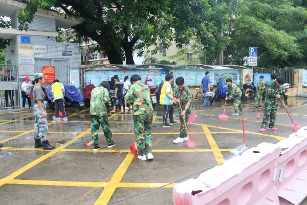 2019年8月26日上午,横栏中学初一级的同学们穿上志愿者服装,积极参加了由学校德育处组织的创文明城镇志愿服务活动。50多名新生以实际行动参与校内外的清洁服务,为美化校园献出自己的一份力量。