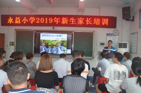 微风正好,阳光不燥,和着初秋深情的曲调,为了帮助新同学们能够顺利完成幼儿园到小学的过渡,尽快地适应小学生活,8月31日上午,永益小学的领导和一年级的全体老师满怀喜悦的心情,热情地欢迎一年级新生和家长们到校参加培训。孩子们在老师可亲的微笑中,踏进了各自的教室。