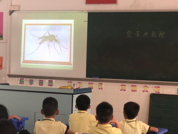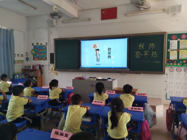 班会课上,班主任以区防疫中心派发的预防登革热知识为内容的PPT及动画视频,细心讲解,循循善诱,让学生明白登革热是一种通过蚊子叮咬传播的急性传染病,如何预防这传染病,特别强调,在登革热高发期,学生尽量减少外出,特别是少去草地、积水等蚊虫密集的地方,防范蚊虫叮咬。要求值日生每天对教室进行清扫消毒;对卫生死角要进行全面检查,清除垃圾杂物等,让他们一起行动起来,预防登革热。