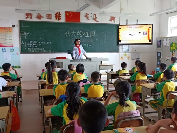 课堂伊始,各中队辅导员通过爱国故事、爱国诗歌,引发学生共鸣,激发学生的爱国热情。紧接着,辅导员向学生介绍了博大精深的中华文化、闻名世界的四大发明、风光秀丽的祖国山河及艰苦奋斗的科学梦想等,教室里引发阵阵的掌声,学生们无不对伟大的祖国感到自豪和骄傲。