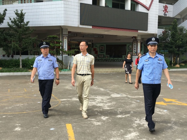为了促进校园安全防范工作 ,9月5日下午,东凤镇公安分局治安大队大队长李斐明、指导员卢日江以及东凤镇教育事务指导中心黄美英老师等一行4人来到同安小学督导校园安全工作,学校领导及安保人员陪同检查。