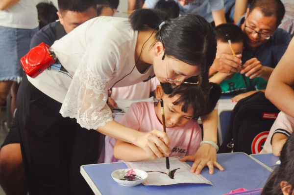 开笔礼的第一个环节是拜师礼,让学生懂得感谢老师言传身教,以师志为己志,施志行道,以谢师恩。第二个环节是朱砂开智,祝福孩子从此眼明心明,好读书、读好书。 第三个环节是击鼓明志,在罗权鎏校长的带领下,全体学生宣读主题语,以此明志。第四个环节是开笔明理,一笔一画写好字、一生一世做真人。家长和孩子们先认真聆听罗校长带来校长第一课“写人字”。接着家长同孩子共同完成“开学第一字”。