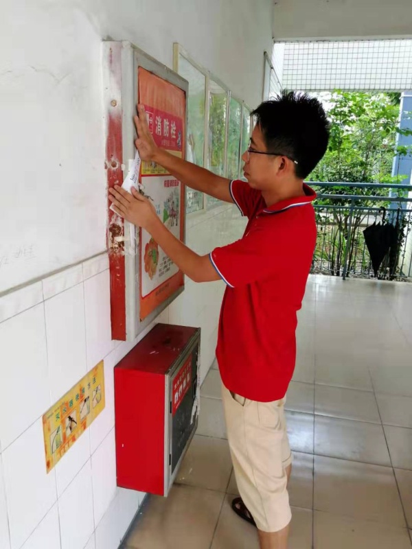 根据国务院教育督导委员会办公室近日发布的《关于进一步加强中小学(幼儿园)安全工作的紧急通知》文件精神,为切实做好学校校园安全工作,确保广大师生生命安全,9月4日,南头镇民安小学负责学校安全工作的陈建华主任和安全小组李松恩老师对本校教学楼、外墙、各种设施进行一次安全排查。