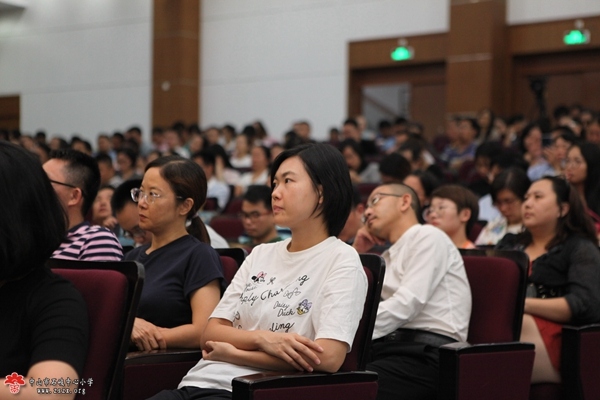 开幕式结束后,曲阜孔子文化学院院长、复圣颜子第七十八代嫡孙、著名书法家颜廷淦先生作了题为“孔子思想的传承与家风”的报告。颜院长生动介绍了了孔子思想的主要内容:人文化成、躬身修己,人生意义、内圣外王之道、天人性命。重点讲述了修养人格,培养正直、真诚、担当和责任,强调了人之为人的根本特征,即人具有四心,恻隐、羞耻、辞让、是非之心。在正确理解孔子思想方面,他提出了五个原则:民本思想、与时俱进、海纳百川、实事求是、经世致用。颜院长针对当下的社会环境,希望通过孔子文化教育的普及,继承好传统文化。面对众多家长听众,他坦诚地说,作为家长,就要自我修养,为孩子树立榜样。