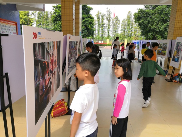 2019年10月22日,下南小学迎来红星美凯龙杯“我和我的祖国”新时代新港口摄影作品展,作品展在该校一楼大堂,深深吸引了该校师生的眼球,大家都利用课余时间前来欣赏。