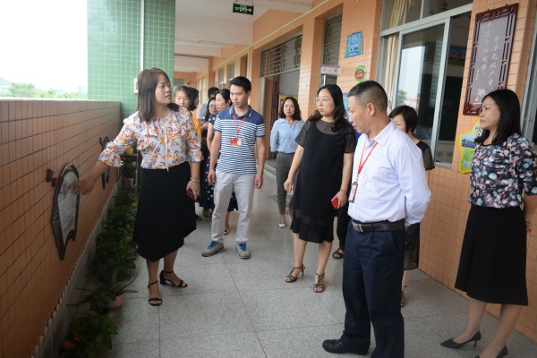 首先罗柳副校长带着督导小组参观了学校整洁优美的校园环境,并一一介绍了校园文化建设、教学楼道建设的特点,接着由德育主任杨江鸣介绍了初中部教学楼楼道建设的特点,每走过一个楼层时都能听见督导小组的成员对大涌旗风学校文化布置的赞赏。随后集中于会议室,先由南区德育专干李亚利进行了简单的介绍后,接着萧若瑜专干也一一介绍了大涌旗风学校的老师。随后由罗柳副校长就学校近年办学理念、办学常规、教研教改及校园特色文化建设等多项工作及取得的成绩进行了简单的汇报,从“寓德育于管理之中的抓组织领导”到“寓德育于队伍建设之中的师德师风建设”到“寓德育于课程管理之中德育课程标准”然后到“寓德育于活动之中的践行社会主义核心价值观”再到“寓德育于特设校园建设之中的走特色办学之路”最后就是“德育经费,渠道畅通、经费充足,保障供给”,德育是有担当的生活教育,各校区坚持以德育特色为引领,着力良好的德育环境建设。让学生们为有理想、有道德、有文化、有纪律的、德智体美劳全面发展的新一代小学生。精彩的汇报赢得在场各位领导的阵阵掌声。