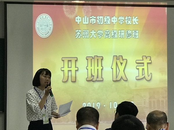 “养天地正气、法古今完人”,2019年10月12日,美丽的苏州大学迎来了40余位来自广东省中山市初级中学校长高级研修班的学员,组织者希望借助苏州大学这一全国知名平台,通过专家讲座、现场教学、浸润式跟岗学习交流三大阶段,以丰富的学习形式,整体推进中山市初中校长队伍的专业成长,是继2004年后中山市教体局为全市初中校长组织的又一次外出集中培训活动。