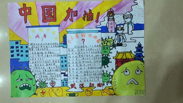 疫情面前,港口镇群众小学全体师生迅速行动,加入到这场战“疫”中。学校定方案、明要求、勤宣传、强预防,为全体师生提供有力的安全保障;老师们牵挂着班级的孩子们,以家为阵地,打电话、发信息,了解孩子们的假期生活、健康状况,为孩子们送上问候,引导孩子们正确面对疫情、做好防护工作,鼓励孩子们要相信党和政府,全民参战,一定能打赢这场防“疫”战。孩子们“宅”家心不慌,积极参加学校“抗击疫情,星空体育在行动”寒假实践活动,为抗击疫情尽自己一份微薄之力。大家纷纷用自己的方式积极参“战”:书法、绘画、手抄报、慰问信、录短视频、唱抗“疫”歌……孩子们与家长一起用各种方式,以各种形式表心声,致敬战“疫”英雄。大家共同吹响集结号,积极投入到这场抗“疫”中,用自己的实际行动向英雄们致敬,向最美逆行者致敬,为战“疫”呐喊加油,坚定信心,传递正能量,为打赢这场没有硝烟的保卫生命健康之战助力。