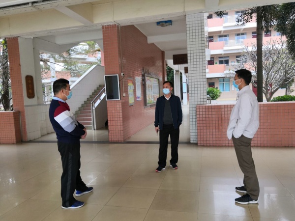 在当前防控物资短缺的情况下,赖校长和总务陈桂兆主任想方设法与上级领导部门和兄弟学校,取得密切的联系,做好口罩、消毒酒精等物资的准备工作,认真组织保安做好假期防控措施,清洁阿姨认真做好校内的消毒工作。赖志君校长每天到学校巡视,亲自与值日老师、清洁阿姨一起打扫卫生。