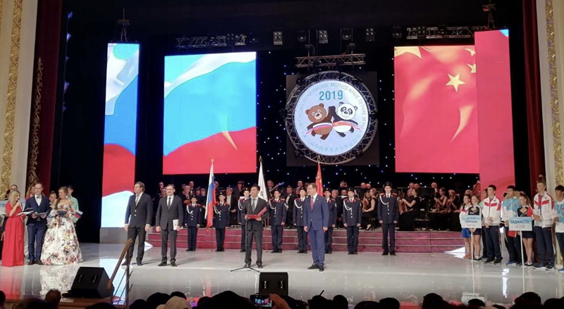 6月17日,第八届中俄夏季青少年运动会在俄罗斯萨马拉开幕。国家体育总局副局长、中国体育代表团团长李建明,萨马拉州州长阿扎罗夫、俄罗斯体育部副部长科西洛夫出席开幕式。