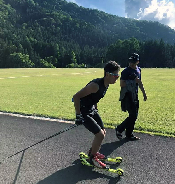越野滑轮中最主要的因素就是有氧供能和滑行技术。在训练中,更多关注运动员在上坡、平地、下坡的有氧供能方面的分配比例;以及通过提高滑行技术、优化滑行节奏和提高基础体能这三点,将比赛过程中如何减少能量消耗和提高运动员氧亏恢复能力也是这一阶段训练的重点。具体通过一步一撑、两步一撑、同推、徒手蹬等滑轮技术训练,配合相关体能训练使运动员尽快实现越野滑雪技术动作的提升。接下来的90天里,队伍还将前往欧洲进行夏季专项训练并参加北欧两项夏季大奖赛,北欧两项集训队将紧紧围绕“苦干1000天,拿下冬奥会”的要求,将队伍打造成一支敢打仗、会打仗、打胜仗的国家集训队。