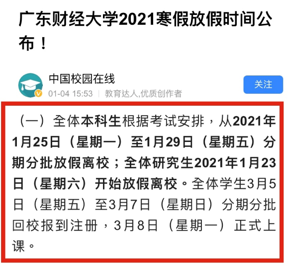 近日,广东多所高校也陆续发布寒假安排一起来看看吧!
