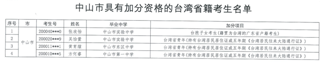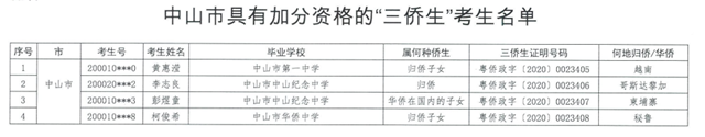 1月18日,中山市教育和体育局公示广东省2021年普通高考具有加分资格考生名单。名单显示,中山共有10名考生获加分资格。根据政策,上述考生每人高考可获5分加分。