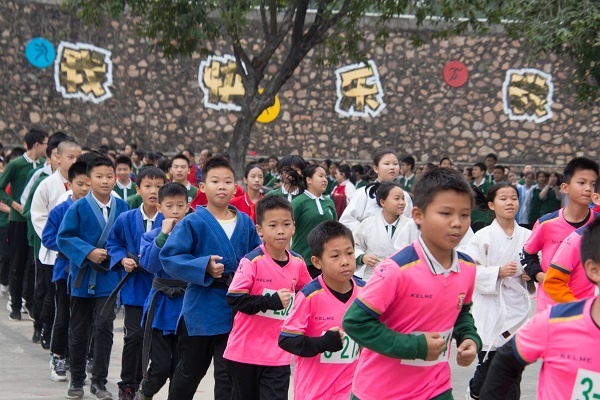 “校园马拉松欢乐跑”是五桂山学校创建市一流名校征途中的一项重要活动,是学校继推动“校园快乐足球”活动之后的又一个全校性的大型活动,至今已经举办了两届。与首届“校园欢乐跑”相比,参加本届活动的人数由300人增加到500人;跑程也本着循序渐进的原则,由3公里,增加到3公里和5公里两个。参加人数、跑程的增加,说明学校推动的这项运动越来越吸引学生。