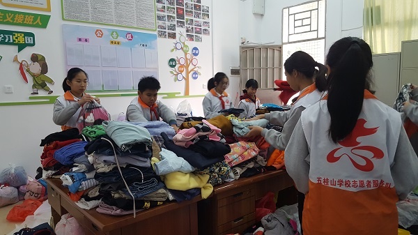 活动恰逢新年的第一波寒潮,但也抵挡不住同学们的热情,在短短的3天时间里,五桂山学校的学生踊跃参加活动,把家里闲置不穿的衣服收集起来,由各班负责人统一交到了团委办公室。交上来的衣物堆满了团委办公室的办公桌和过道。五桂山学校的学生志愿者认真整理衣服,发现绝大部分的衣服都是比较新的,基本符合捐赠的要求。整理完毕后,衣物将全部上交到中山市青年志愿者协会,捐赠给中山对口支援地区,帮助贫困区儿童添衣添物,奉献爱心。