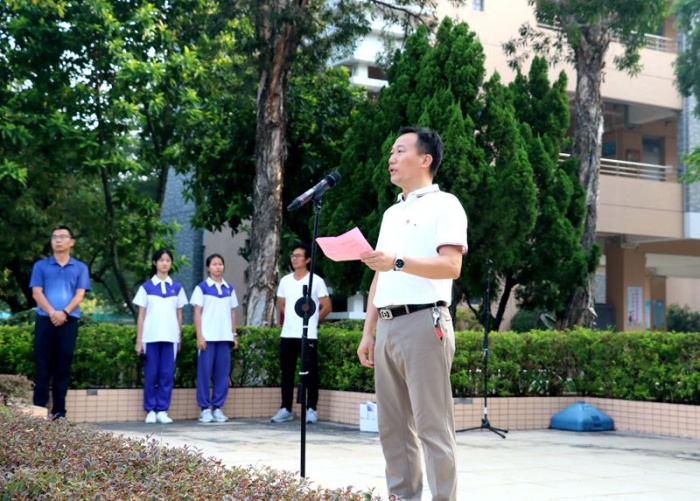 接着,陈校长紧扣国家教育方针、疫情防控要求和中山创建全国文明城市契机,强调学校师生要坚持疫情防控常态化,坚持高标准开展教育教学活动,高标准落实“创文”的教育活动和宣传工作,围绕着“劳动”、“健康”、“文明”和“爱国”四个关键词,表达了对永中师生的殷切希望: