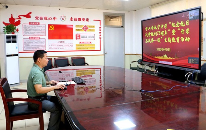 2020年9月3日,是中国人民抗日战争胜利75周年纪念日,也是值得每个中国人铭记的日子!8点40分,中山市永宁中学全体师生在各班教室举行“纪念抗战胜利75周年”主题校会。学校使用钉钉群进行线上直播,杨青华副校长主持。