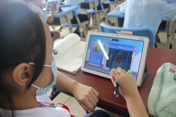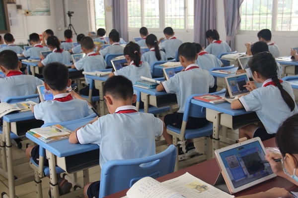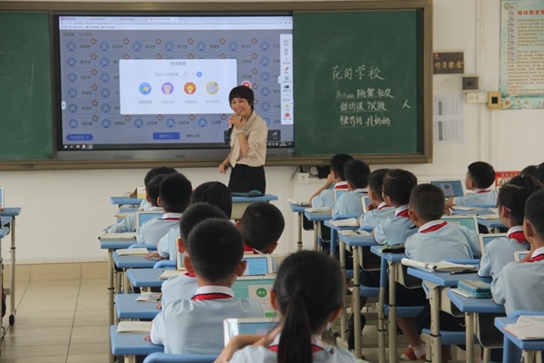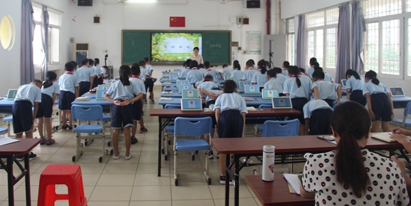 接着,梁雪芬副主任为大家展示一节尝试用平板辅助教学的智慧课堂,本节课梁主任充分展示了其对平板电脑教学的熟练运用,以平板、PPT课件、以及学生熟悉的图片为教学媒介,开展各种生动有趣的教学活动,同学们争先恐后地抢答问题,极大地激发了学生的学习热情。