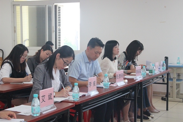 第三议程是课题中期汇报。由课题主持人司徒咏老师代表课题组成员在二楼教师会议室作课题研究中期汇报。司徒咏老师的发言自信大方、铿锵有力,主要从研究背景、目标、内容、思路、方法、课题创新之处、中期成果等方面向与会专家、领导和老师们作了详尽的汇报。在汇报中,她指出本课题研究始终把激发学生英语阅读兴趣,提升学生英语阅读能力和英语思维能力放在重要位置,努力打造有特色的单元整体视角下的阅读教学。同时,她也提出了她对此课题研究的疑难困惑和后期展望。