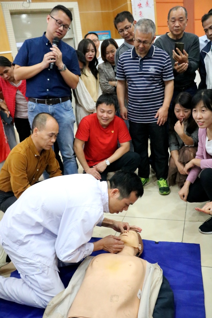 下午教师会,学校专门召开教职工安全工作会议暨应急救护培训现场活动。陈清茂校长主持会议,提出了学校近期安全工作重点、努力方向及常态防疫要求。本次安全教育和培训专门请来了小榄人民医院急诊科赖智权主任为教职工进行急救知识培训,小榄人民医院周日院医生进行“心肺复苏”现场示范,老师们也争先恐后上场进行心肺复苏实操训练。本次培训针对性强、实用性高,教职工们受益匪浅。