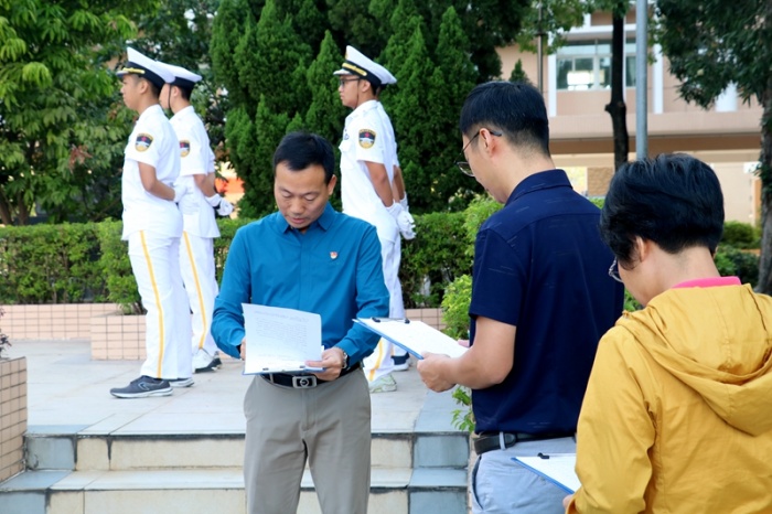 上午8:41,警报响起,各岗位指挥员立即就位,引导各楼道学生按既定疏散路线,快速、有序、安全撤离到运动场。班主任、级组长、楼道指挥员快速清点人数,记录疏散情况,并逐一向疏散总指挥陈清茂校长报告。升旗仪式结束后,总指挥陈清茂校长立即对本次演练进行了小结,指出了演练过程中存在的不足,提出了新的要求和行动目标,希望全校师生认真落实演练规范要求,不断强化应急演练素质,提升应急救护素养。