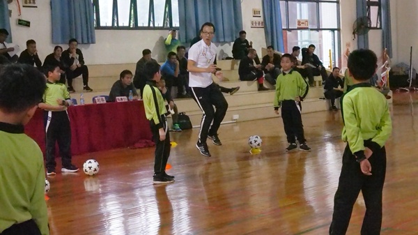 接下来是石歧中心小学刘菲老师执教四年级《足球脚内侧传接球》一课,刘老师不断激励学生进行拓展尝试,让学生在练习过程中渐渐学会了脚内侧传球的动作,再进行个别指导,不断鼓励学生,让学生在合作与竞争中练习,激励学生们勇于展现自我,体会足球的魅力和体育的乐趣,学生在轻松愉快的体验中完成了足球技能的学习。