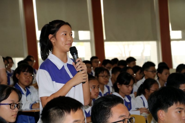 11月18日下午,为了增强团员、青年的责任感和使命感,提高大家的思想觉悟,增强团员、青年的政治意识、组织意识和时代意识,永宁中学团校在阶梯教室开展主题为“新时代,新青年,新作为”精品团课(第一期)。永宁中学团校全体讲师团成员和初二、初三年级100多名团员学生及入团积极分子参加了学习。活动由团委罗结晶老师主持,陈清茂校长主讲。活动还特邀了小榄镇党委副书记冯结红女士、小榄镇团委书记李锐斌先生、小榄镇教育线党委副书记邓永飞先生、小榄镇西区社区团委副书记李惠珊女士、小榄镇兄弟学校的团委书记、永宁中学全体行政领导也参加了本次的团课活动。
