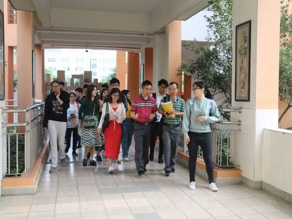 16日上午,教师进修学院周朝华老师带领中山市小学科学新教师们抵达中山市菊城小学。首先在陈新华主任的引导下参观了科教氛围浓厚的校园。菊城小学简单朴实却能很好契合科技教育及科学校园的科教功能室场和便于开展科教活动的校园环境让新入职的科学教师们羡慕不已。