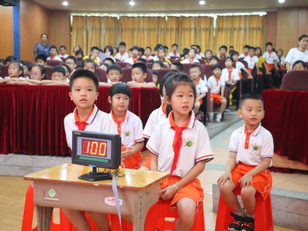 本次入队培训以知识竞赛的形式展开,由大队副辅导员王甜老师和关永钏老师组织。竞赛开始前,王甜老师带领所有队员和同学们边唱队歌边做手语操。接着,各中队少先队员代表和预备队员组成答题小队。本次竞赛分为必答题、抢答题和实操比赛题三个环节。必答题要求各队先选择题号,每队必须答3题,答对加10分答错或不答不扣分,观众可以补答。在第一轮的比赛中所有的队伍抽中的题目全都答对,这也体现了队员们对少先队知识都比较了解。最激动人心的是抢答题环节,这需要队员们眼疾手快,通过这一环节的比拼,每一个小队的分数也拉开了差距。实操项目,要求参赛队员在规定时间内自己系好红领巾,关永钏老师面对所有队员和预备队员们当场演示正确系红领巾的方法和敬标准队礼的姿势。在整个活动中各中队队员们和预备队员们参与的积极性非常高。