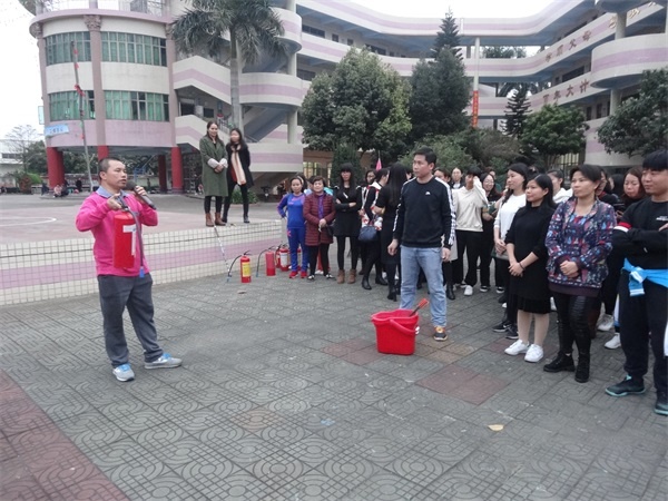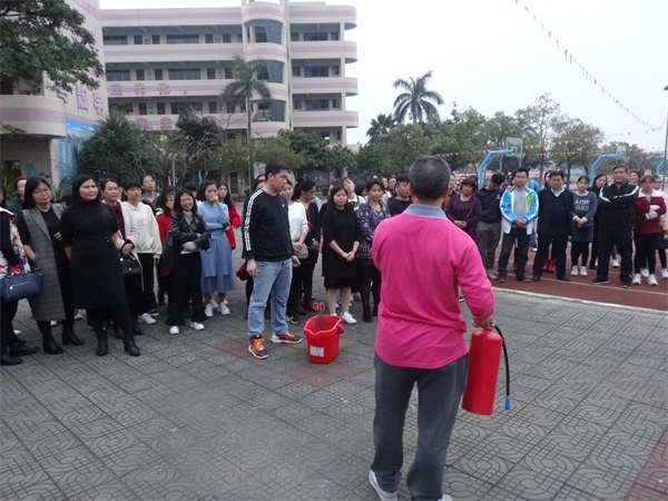 为进一步加强学校安全工作,营造安全、稳定、和谐的校园环境,增强东阳学校教职员工消防安全意识,了解消防安全知识,提高教职员工防火安全意识。2月27日晚上,在安全处谢平主任的组织下,由后勤处何文勇的讲解,东阳学校开展了一次全校教职员工消防灭火器使用培训及演练活动。全体教师、后勤生活老师、保安人员都参加了此次培训活动。