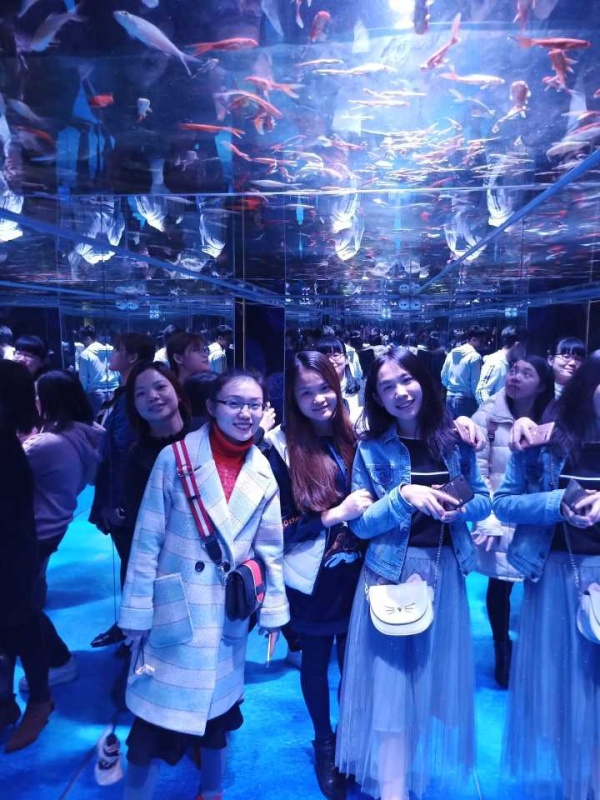 活动四:海洋乐园开眼界。吃饱喝足后,女神们接着上到三楼的“6K帆鲨海洋乐园”赏鱼。一进门,人们就被一条条活泼可爱、美丽漂亮的鱼儿所吸引。越往里走,惊奇声、赞叹声更加不断。在这祥和的蓝色的海洋中,人们纷纷留影留念。