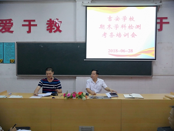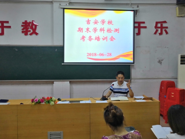 吉安学校期末学科检测考务培训会发布时间:2018-06-29 10:39 信息来源:本网站 浏览次数:144