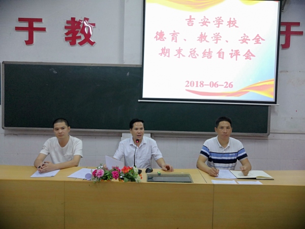 ——吉安学校德育、教学、安全期末总结自评会发布时间:2018-06-27 17:10 信息来源:本网站 浏览次数:66