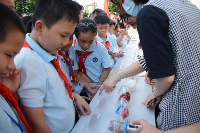 为了让同学们学会辨认新型毒品,社工人员还给同学们现场展示了“摇头丸”“浴盐”等十几种仿真新型毒品样本,吸引了很多师生们驻足观看,同时他们还向同学们发放了禁毒宣传手册,通过多种方式让同学们提高识毒、防毒、禁毒意识。