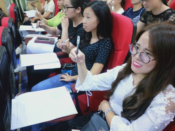 干货满满的讲座让老师们收获满满!看!受益匪浅的老师们可是按捺不住自己跃跃欲试的心情了,老师们一个个当场在本上开始练习。大家惊喜地发现,经过萧老师的指导,自己的字体真的比以前美观多了。