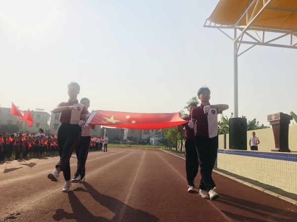 8时整,同学们身着统一的校服,佩戴红领巾,排着整齐的队伍走进操场。伴着激昂的出旗乐曲,小小的护旗手们,托举着国旗,迈着矫健的步伐,雄赳赳气昂昂地将国旗护到主席台。《义勇军进行曲》在操场上空响起,全体少先队员齐唱国歌、行队礼。鲜艳的五星红旗徐徐升起、迎风飘扬,昭示着聚星学校的孩子们在幸福的时代里健康快乐地成长。