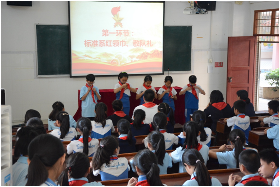 比赛中,各参赛中队分别以标准佩戴红领巾和敬队礼、出退队旗以及少先队知识竞答三个环节进行激烈角逐。各参赛队员们严格按照比赛标准的要求展示自己的佩戴红领巾、敬标准队礼以及出退队旗的实力。少先队知识竞答环节,台上参赛队员们的精彩竞答,更是赢得台下的阵阵掌声。