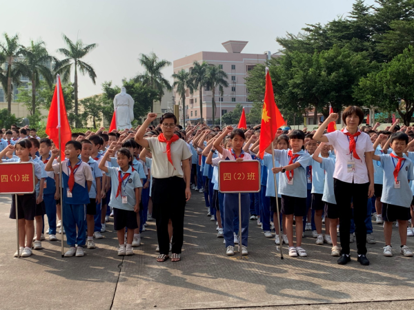 为庆祝少先队建队70周年, 2019年10月12日上午,广浩学校举行了庄严的“红领巾与祖国共成长”庆祝中国少年先锋队建队70周年微仪式活动。
