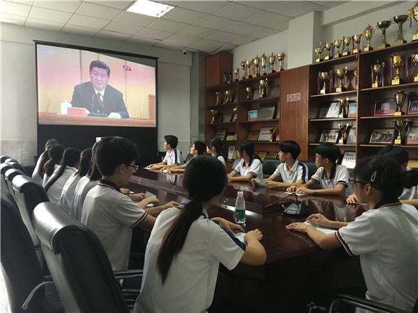 6月17日,新长江团支部在校团员集聚于学校一楼会议室观看“纪念五四运动100周年大会”视频回放,据新长江学校团委书记谭嘉勇介绍,视频于4月30日直播当天已召集团员观看,此次观看主要是“温故而知新”,再次的深入学习习总书记的重要讲话精神,巩固自己的知识,提高思想境界,做一名合格的团员。