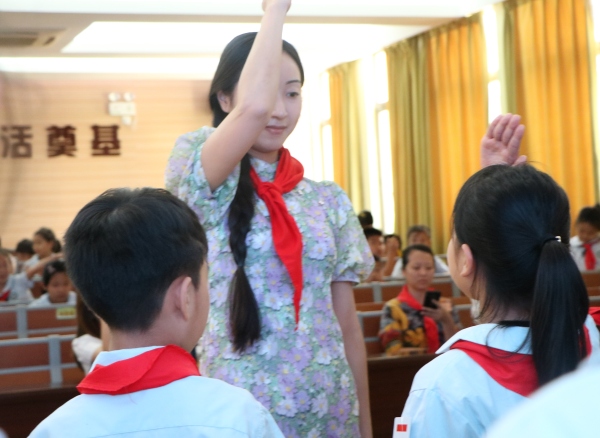 会议在队旗出旗中拉开序幕,少先队员们雄姿英发,步伐矫健。全场敬队礼,把整个仪式带入了庄严肃穆的氛围中。出旗仪式后,全体少先队员高唱《中国少年先锋队》队歌,嘹亮的歌声响彻整个报告厅。