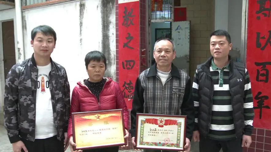 沙溪镇党委书记徐成彬,党委委员刘艺强,镇武装部、退役军人服务中心和圣狮村负责人一行来到彭晓蓝家中,向她的家人送上喜报,表示祝贺!