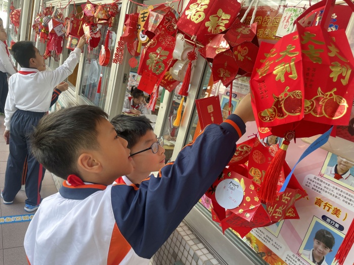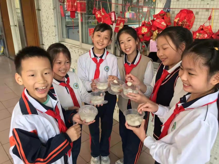 “去年元夜时,花市灯如昼”,赏花灯、吃汤圆,是大家过元宵节必不可少的“仪式感”。为弘扬中华民族传统文化,学校抓住有利契机组织开展“庆元宵展花灯”活动,学生们通过搜集制作花灯的相关资料,运用自己的奇思妙想,在家和父母将利是封、空瓶子等变废为宝,动手制作各式各样造型奇特的花灯,除了传统的宫灯、纱灯、棱角灯之外,这次花灯展也赶上了冬奥热潮,“冰墩墩”“雪容融”造型的花灯也惊艳亮相。有了花灯怎能少得了猜灯谜呢?课间同学们纷纷开展喜猜灯谜的趣味游戏,孩子们争先恐后,不亦乐乎,现场氛围欢乐浓厚。此外,每年的元宵节,学校都会为师生们准备香甜软糯的汤圆,汤圆在孩子们的口中跳动着,孩子们露出了喜悦的笑容,也寓意着在新的一年里大家幸福团圆,甜甜美美。