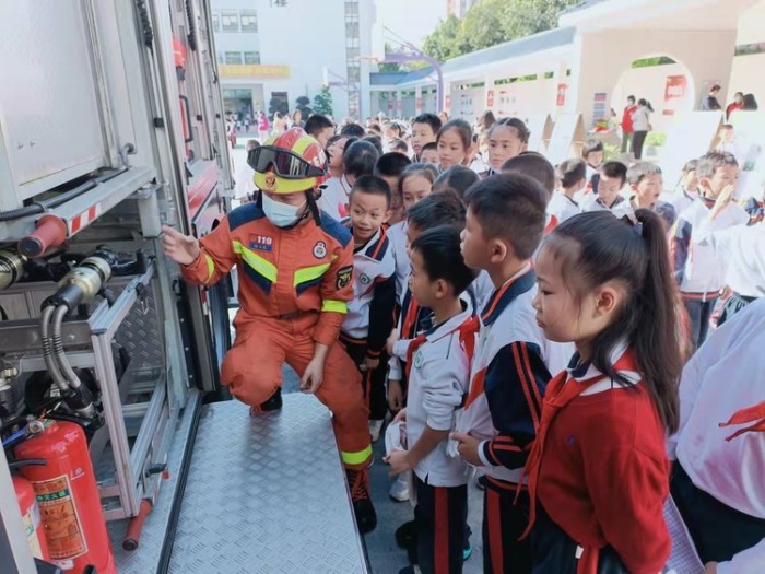 孩子们亲身登上消防车,通过消防员叔叔的讲解,了解基本的消防器械、火灾及自护常识,学会火灾面前如何运用正确的方法自救。孩子们特别认真地聆听消防员叔叔的讲解,让消防安全意识,从小就深深的扎根在心里。“星空体育的消防车车也太厉害了,消防设备一应俱全,今天学了这么多知识,都可以成为半个消防员啦!” 有同学兴奋地说道。