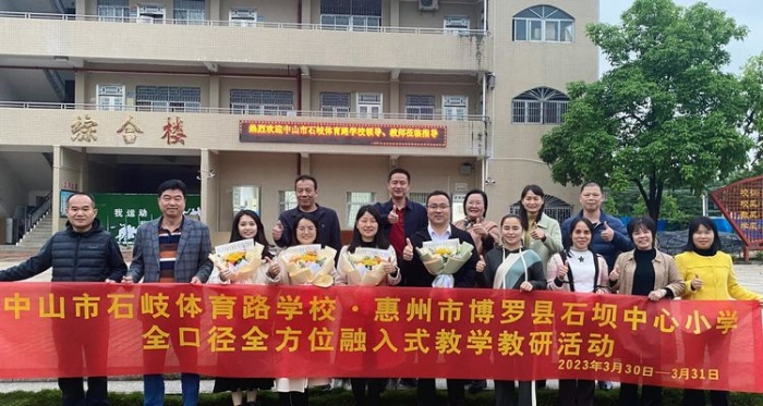 为切实贯彻好《广东省教育厅关于进一步推进落实基础全口径全方位融入式帮扶工作》文件精神,发挥优秀教师的示范引领、带动辐射作用,切实加强与博罗县石坝中心小学教育教学全方位交流,2023年3月30日—31日,中山市石岐体育路学校党支部书记、校长孙华亲自带队,由学校行政与骨干教师组成的交流团队德育处主任陈立、教导处副主任刘瑜、唐海凤和英语备课组长陈少丹等得力干将一同到博罗县石坝中心小学开展主题为“结对帮扶促均衡,强化教研谋发展”全口径全方位融入式教学教研活动,博罗县教师发展中心挂职副主任郭洪亮应邀出席了活动。