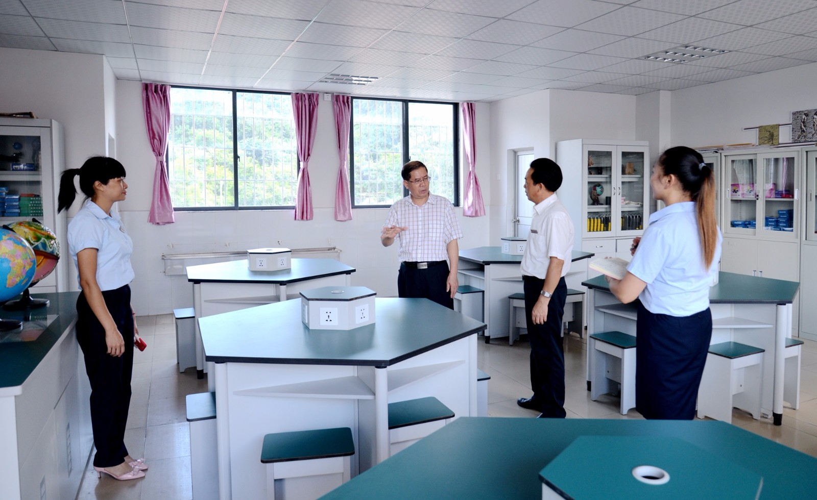 在宏盈教育集团李桂军董事长和校长的陪同下,市专家组一行实地查看了学校的校容校貌、校园文化建设、功能室及各项设施设备。