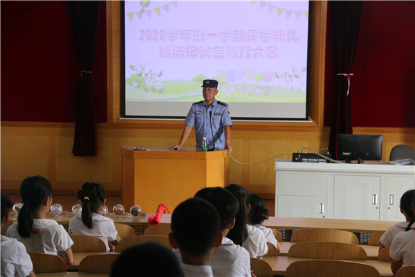 接着,陈惠南纪念学校教育集团南涌小学法制、禁毒校长潘警长结合生活中的真实事例,告诫同学们在生活中需要注意的事项、有效的自我保护措施等,为孩子们新学期的生活学习保驾护航。