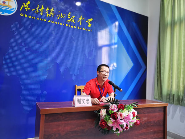 紧接着,由陈村镇初级中学谢文忠校长给全体师生上了开学第一堂思想政治教育课。谢文忠校长作了题为《做个大写的人》的开学讲话。他从写好人字,做个大写的人讲起,从个人到社会,由浅入